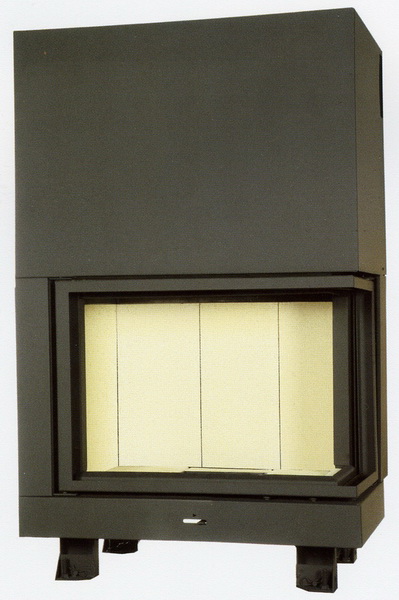 Bloque Mod. Open 800 P. Escamoteable apertura lateral ( acero ). Bloque en acero al carbono con interior en cerámica refractaria. Sistema de apertura de la puerta en guillotina. Control de aire primario. Sistema de doble combustión. Posibilidad de ventilador 400 M3/h. Abierto lateral izdo. o dcho. 14 Kw.
