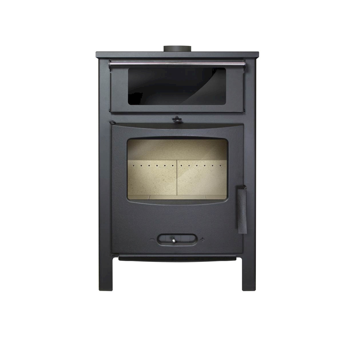 Estufa de leña en acero, potencia con rango de 6 a 12Kw, sistema de cristal limpio. Horno con puerta.
