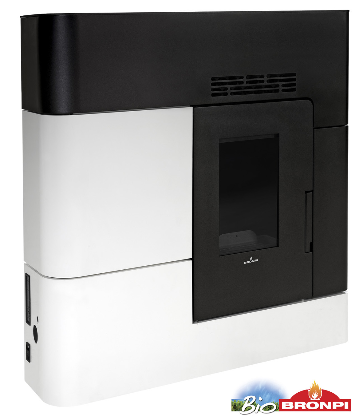 Estufa de pellet extraplana canalizable. Potencia máx: 12.4 kw. Capacidad del depósito (kg): 18kg. Interior Metalico. Canalizable (n° x Ø): 2 X 80.