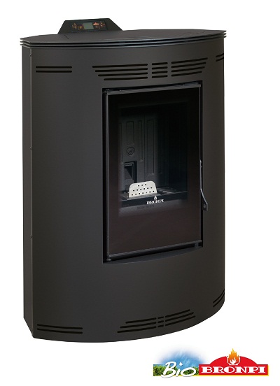 Estufa de pellet aire. Potencia mín-máx: 4.5 - 9.5kw. Capacidad del depósito (kg): 21kg. Interior Fundición. Colores disponibles, beige, burdeos, negro. Perfectamente adaptable para colocar en rincón