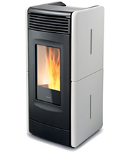 Estufa de pellet ventilada. Puerta en fundiciòn. Top en fundiciòn. Amplia visiòn de la llama. Sensores de seguridad. Revestimiento lateral en elgante cerámica. Quemador rotatorio, limpieza automática del quemador de pellet, el usuario no necesita limpiar el quemador. Estufa DUAL, convención natural y forzada desactivable. Colores burdeos, blanco, pergamino, negro.